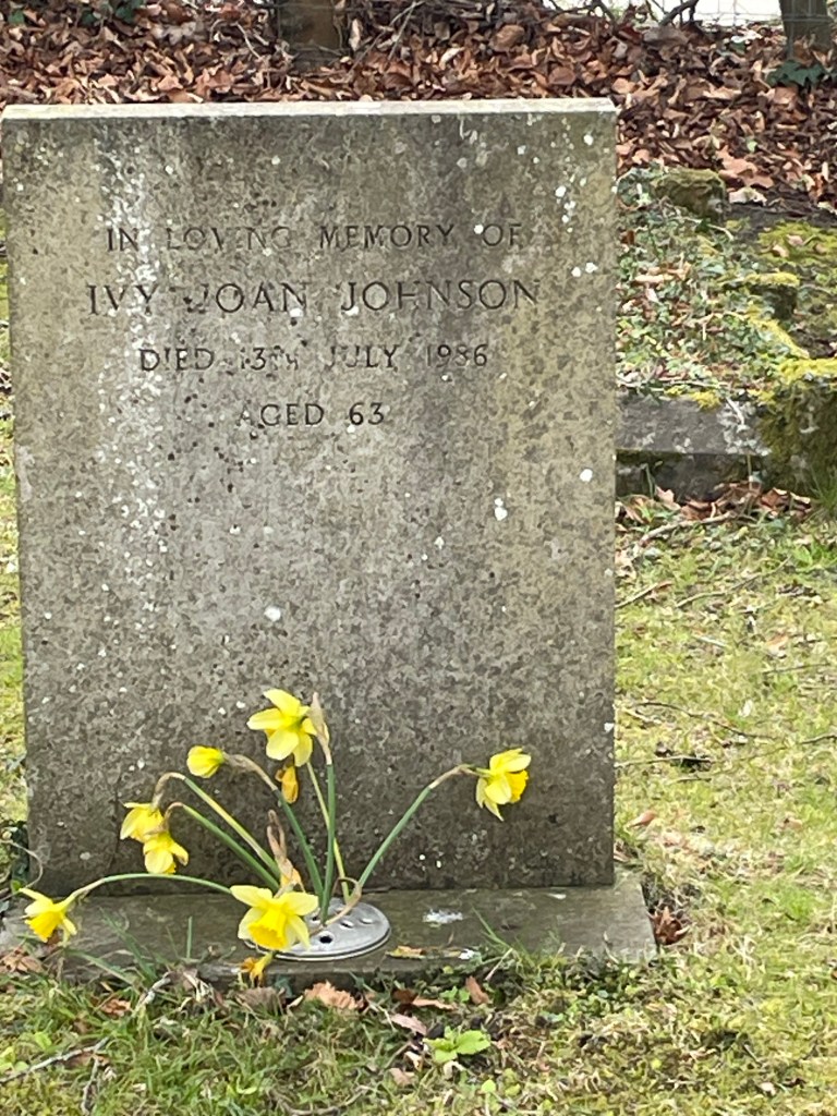 Beside Rose Cottage is the tiny parish church. Grandad used to take care of the churchyard and he took his role very seriously. I’m glad to see it’s still neat and tidy. Nanny Johnson’s grave was sporting a jaunty bunch of daffodils. I wondered who had put them there. A picked some daisies and laid them beside the headstone.