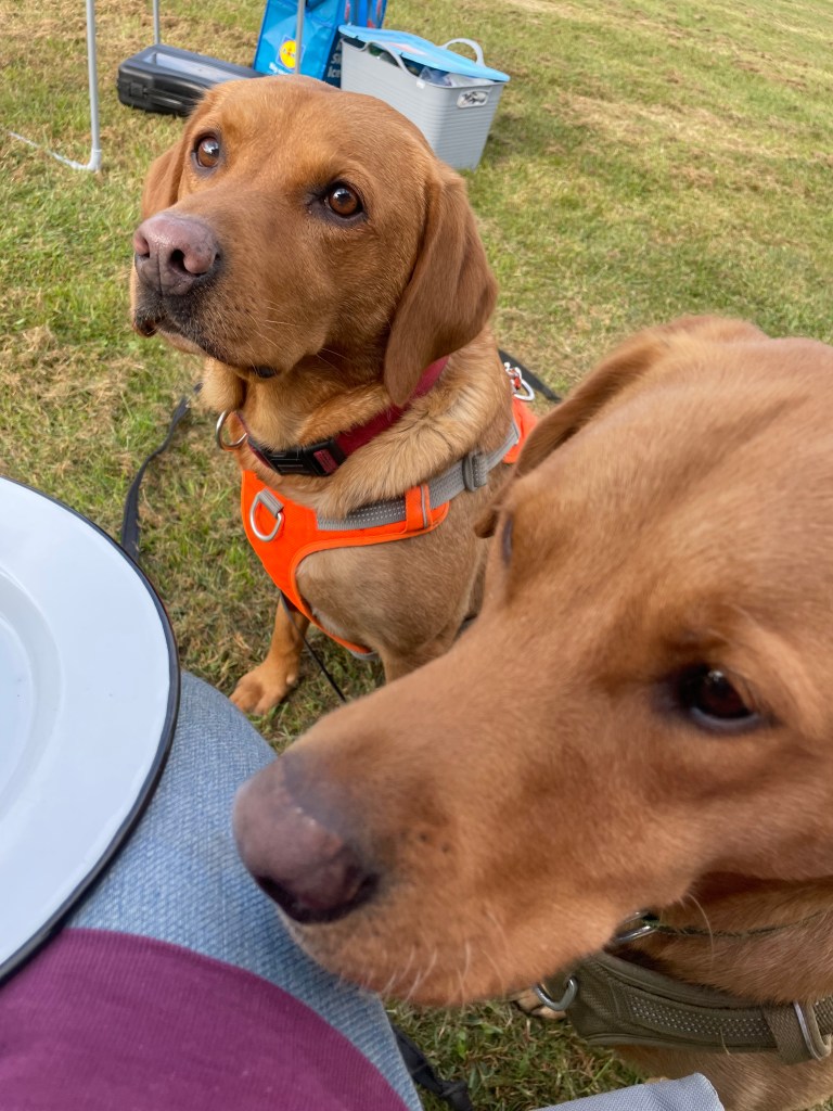 - Long leads for tethering on site (I tie the dogs to the van – I did try those tethering screws but the dogs pulled them out of the ground)